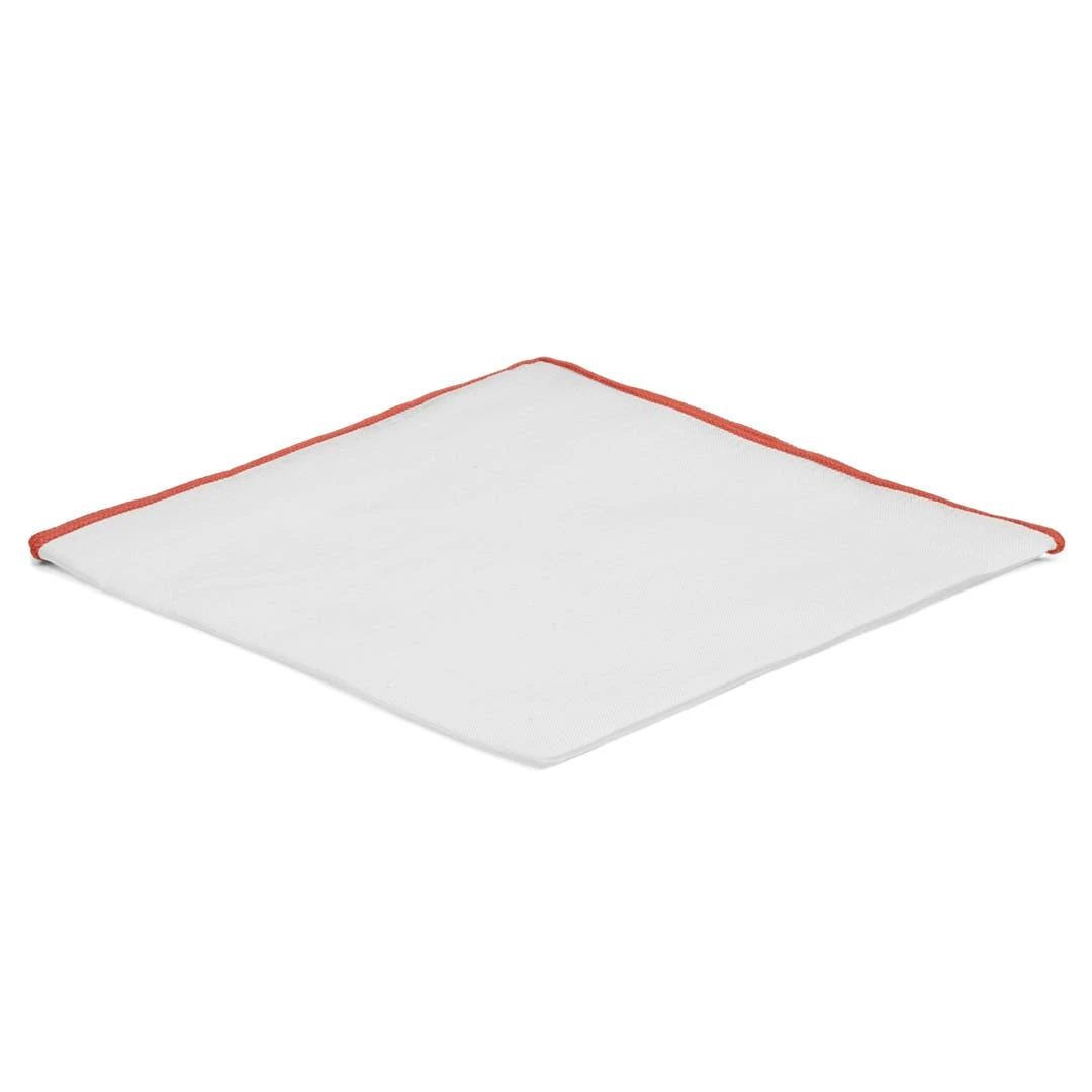 LA pochette de costume parfaite pour les occasions estivales. Sa confection en lin blanc renforcée de bords corail lui procurent un look très très cool.