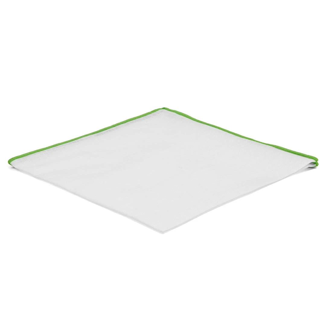 Cette pochette de costume arbore un schéma de couleurs blanc et vert frais comme un jour de printemps. Ses bords sont renforcés pour éviter qu’elle ne s’effiloche.