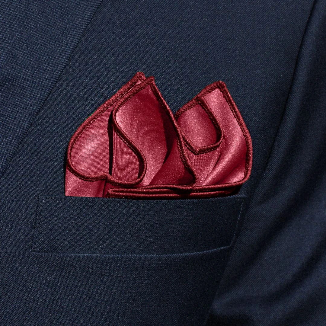 Un mouchoir de poche bordeaux est un choix audacieux qui permettra d’apporter une petite touche de couleur à votre tenue.