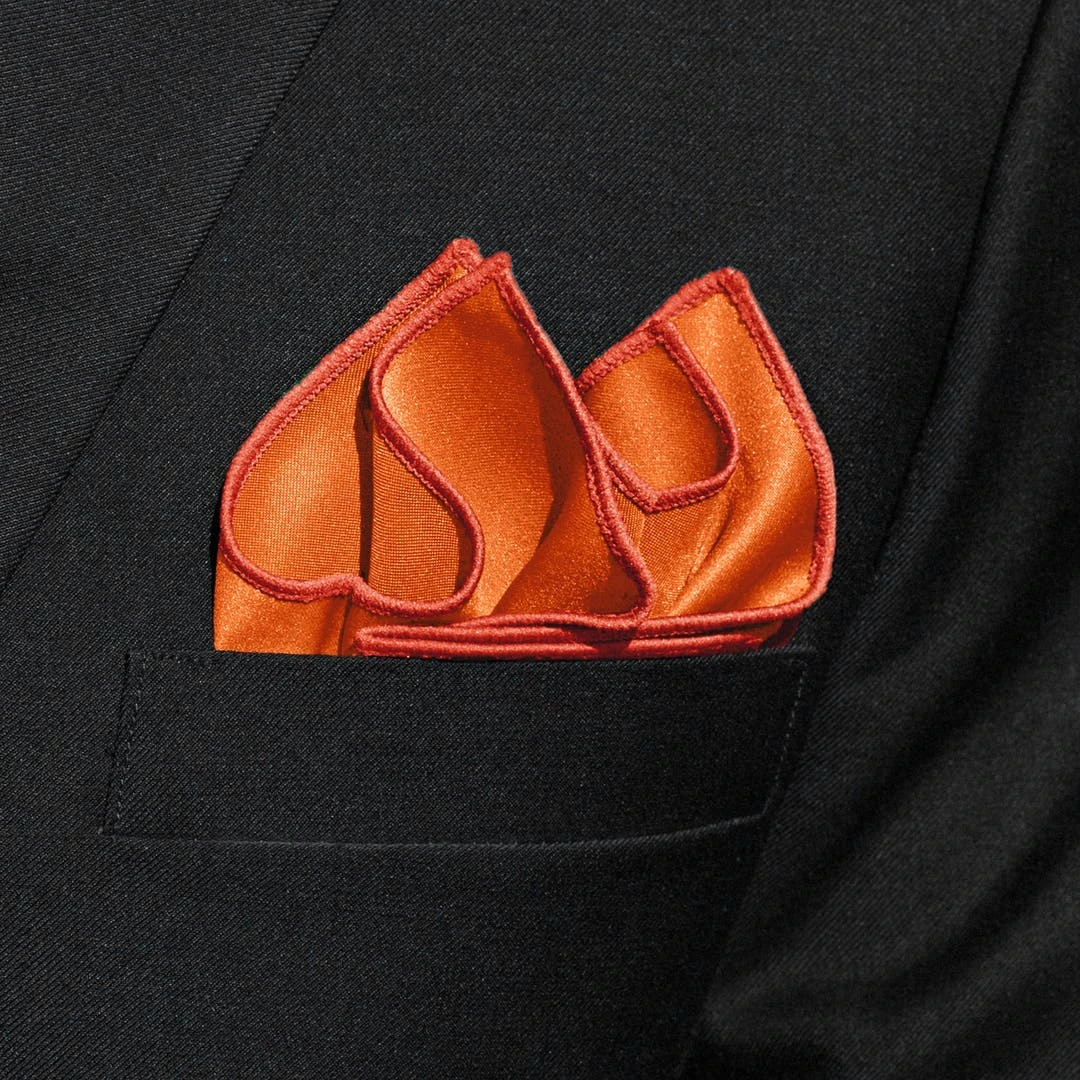 Un mouchoir de poche orange qui ajoute une touche de couleur vive à votre tenue mais sans en faire des tonnes.