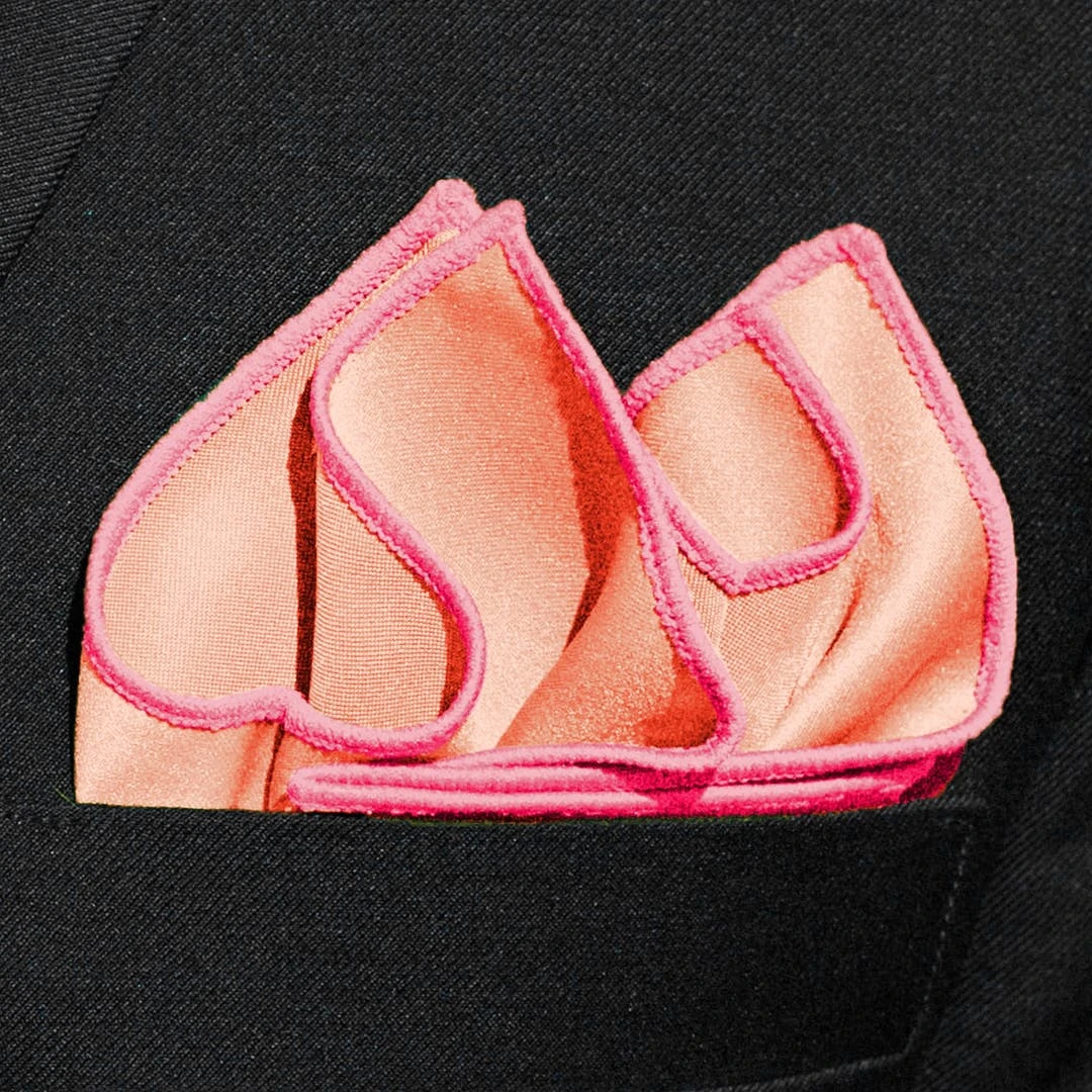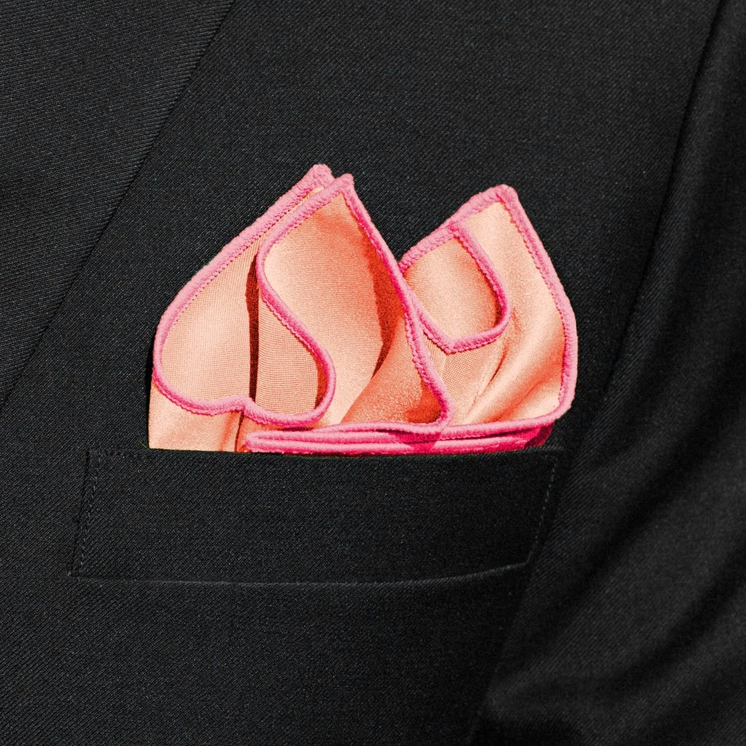 Ce mouchoir de poche rose saumon sera parfait accessoirisé avec une cravate ou un noeud papillon de la même couleur pour un look harmonieux.