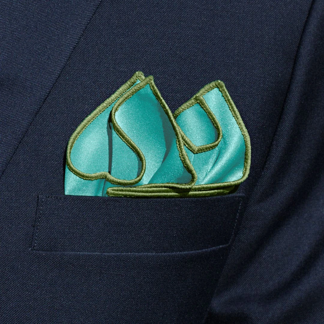Le turquoise clair est une teinte chaleureuse et attirante qui fera de ce carré de poche la touche finale idéale à une tenue bien travaillée.