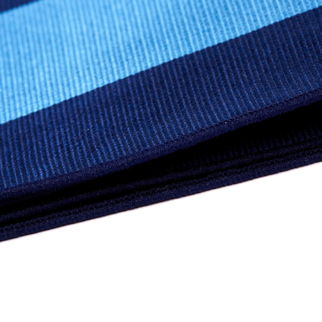 Avec ses larges rayures bleues tout en contrastes, ce mouchoir de poche au look très audacieux vous permettra de donner une touche personnelle à votre veste de costume.