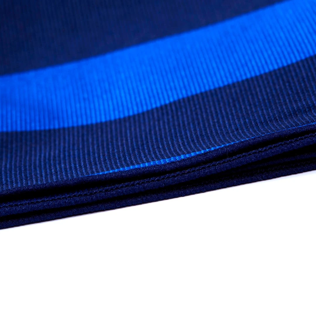 Une charmante pochette de costume décorée de rayures bleues pour un look classique et original.