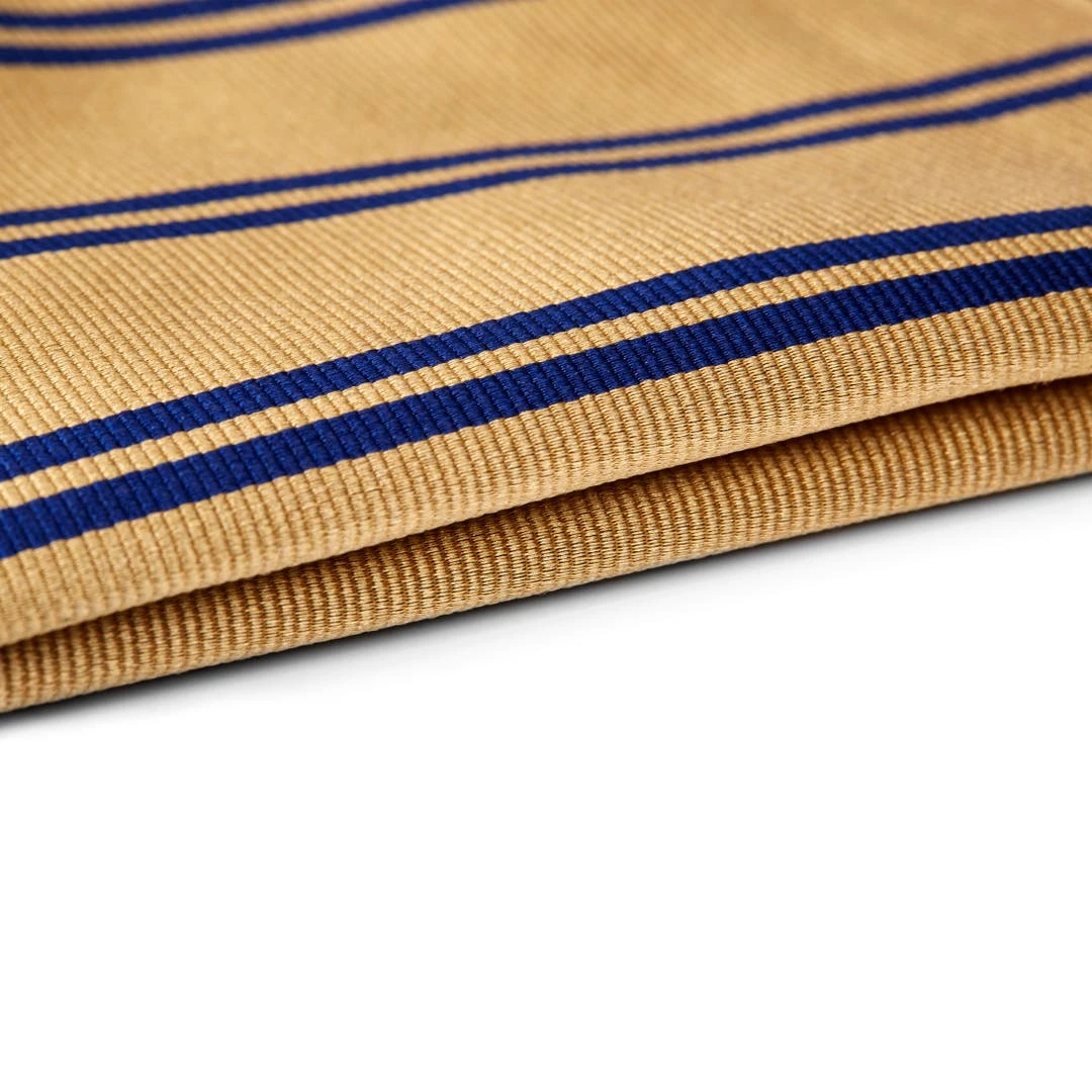 Avec ses rayures bleu marine sur un fond de couleur ocre, ce mouchoir de poche en soie délicate donnere une touche luxueuse à votre veste de costume.