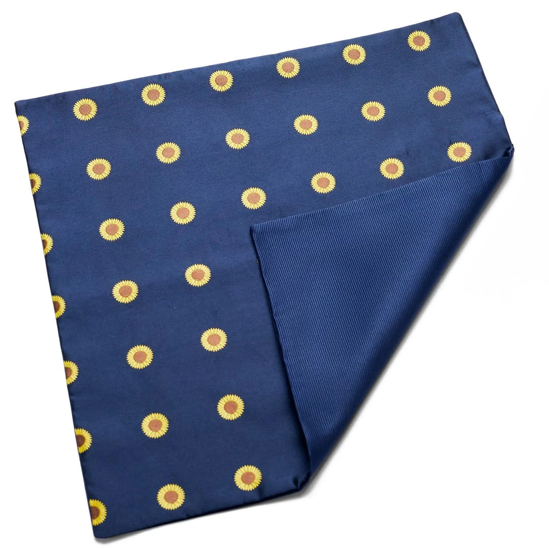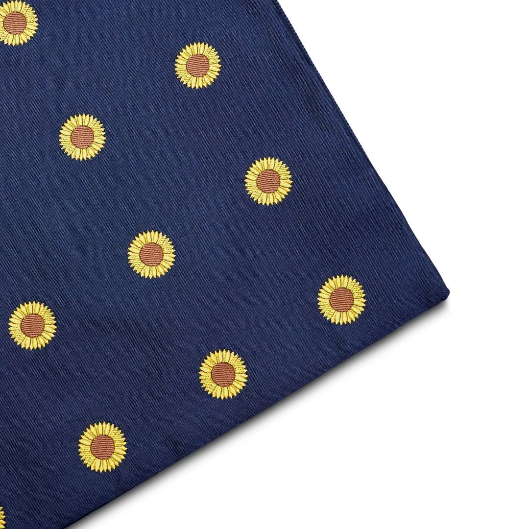 Fabriqué à partir de polyester doux et durable, cette pochette réversible se replie sans effort dans la poche de votre veste. Un bouquet de tournesols d’un côté et le bleu marine uni de l’autre.