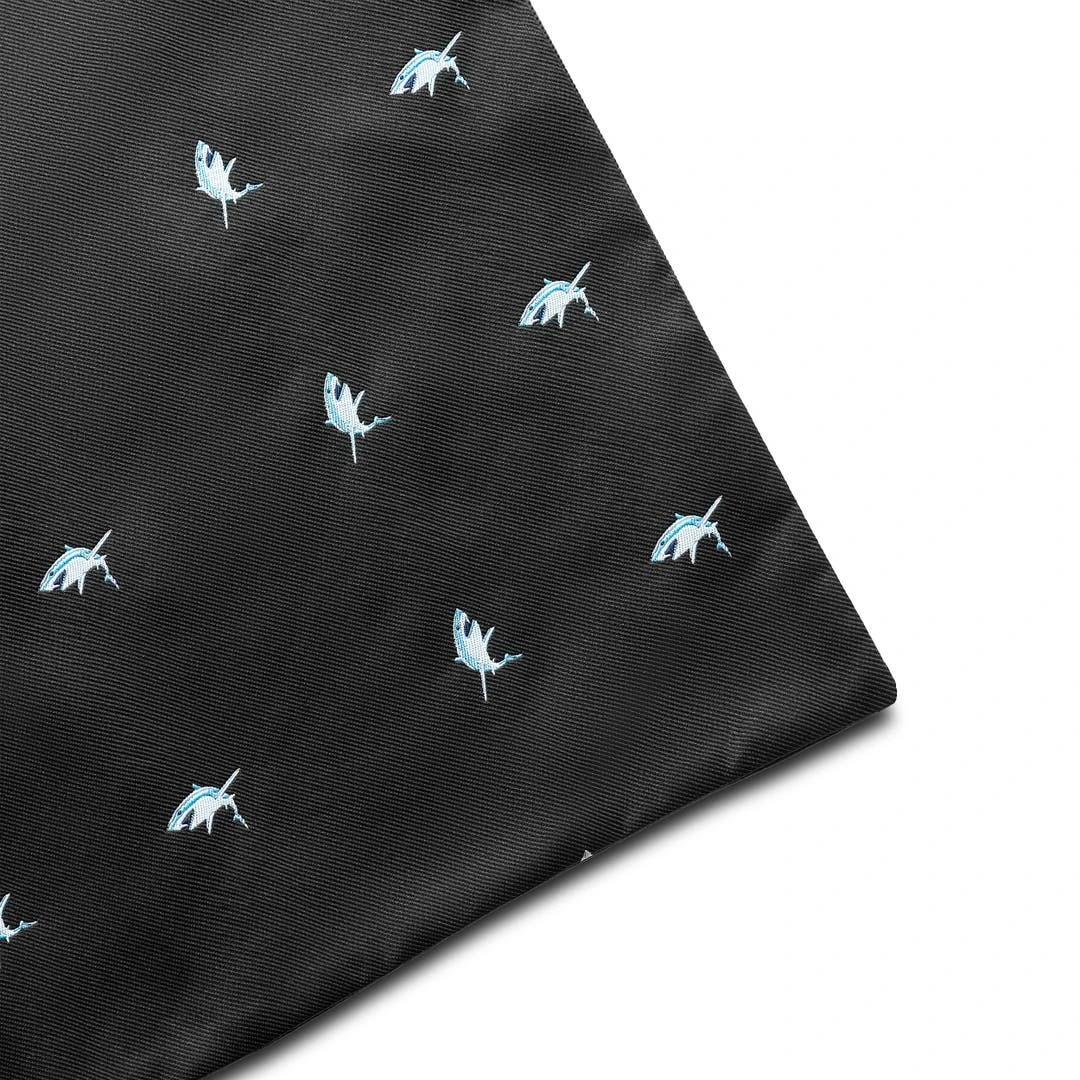 Il est également réversible – avec un banc de requins mortels d’un côté et un noir solide de l’autre. Parfait pour les jours où vous voulez être un requin et les jours où vous voulez nager incognito.