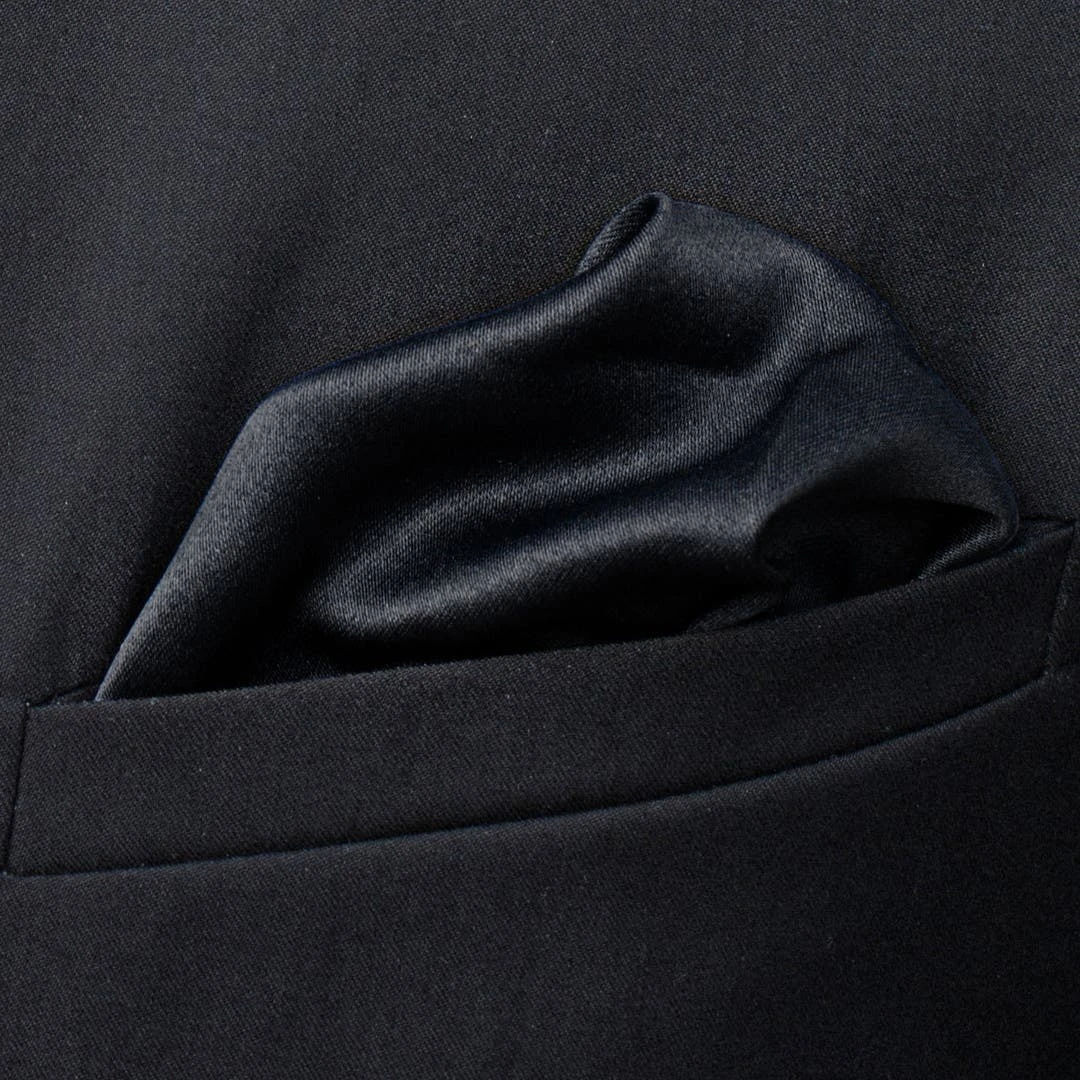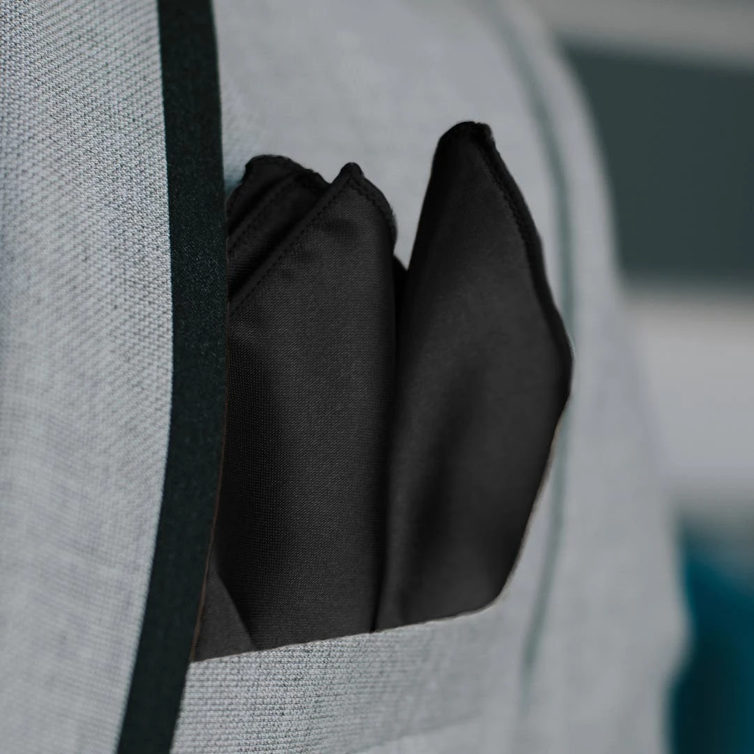 Voici une pochette de costume noir brillant. Faut-il en dire plus ? Probablement pas, mais nous allons quand même le faire.