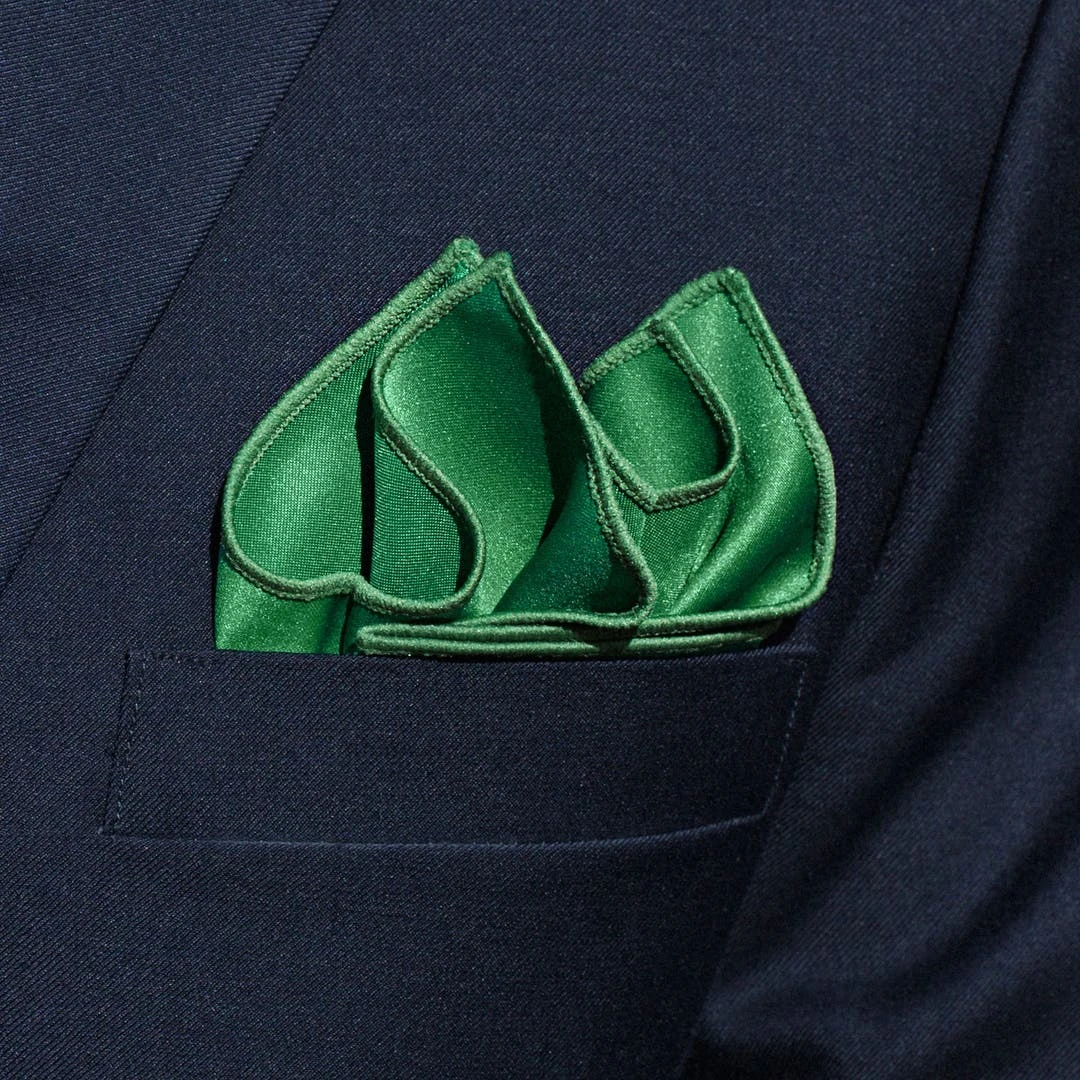 Une pochette de costume verte fonctionne aussi bien seule qu’avec des couleurs assorties pour un ensemble de combinaisons polyvalent et engageant.