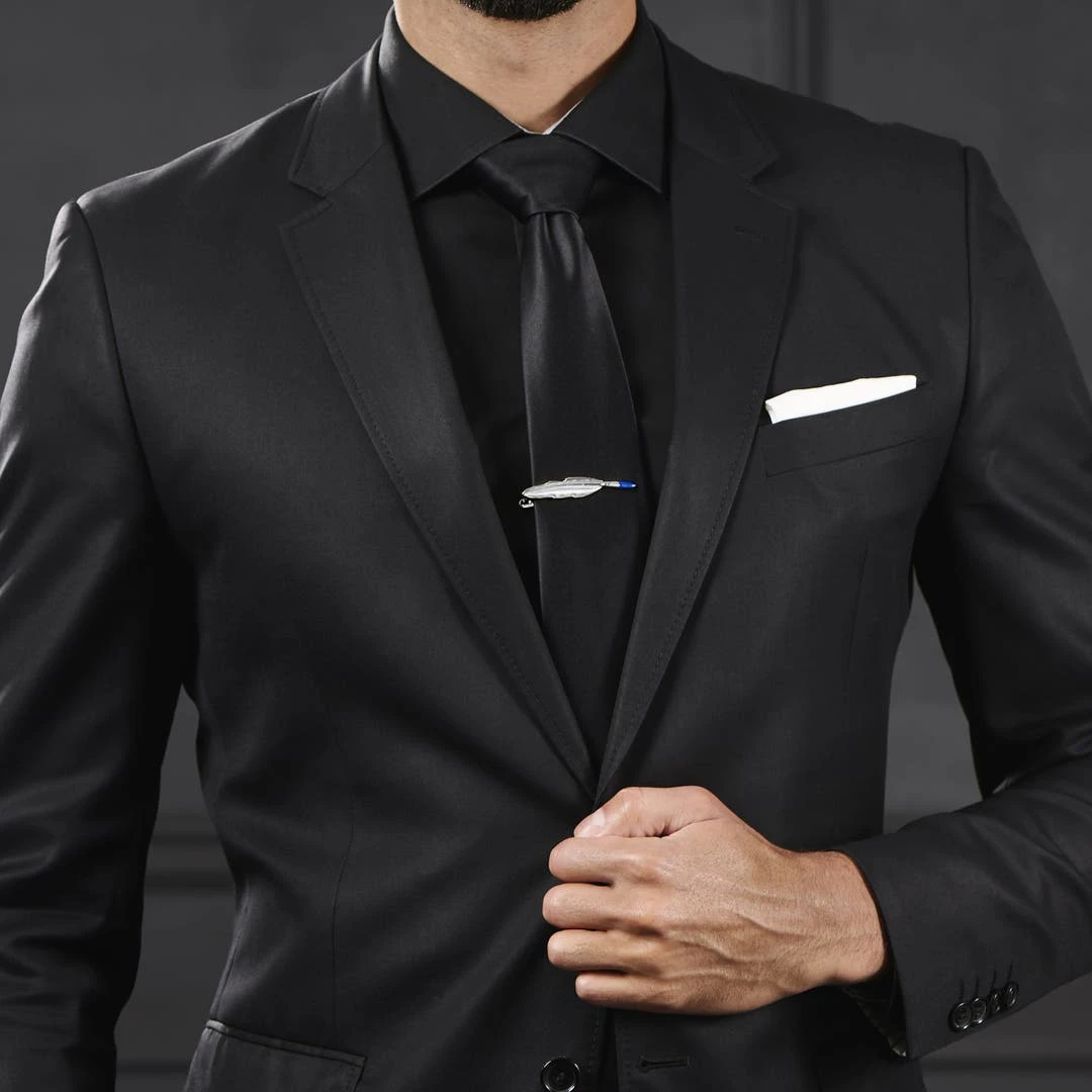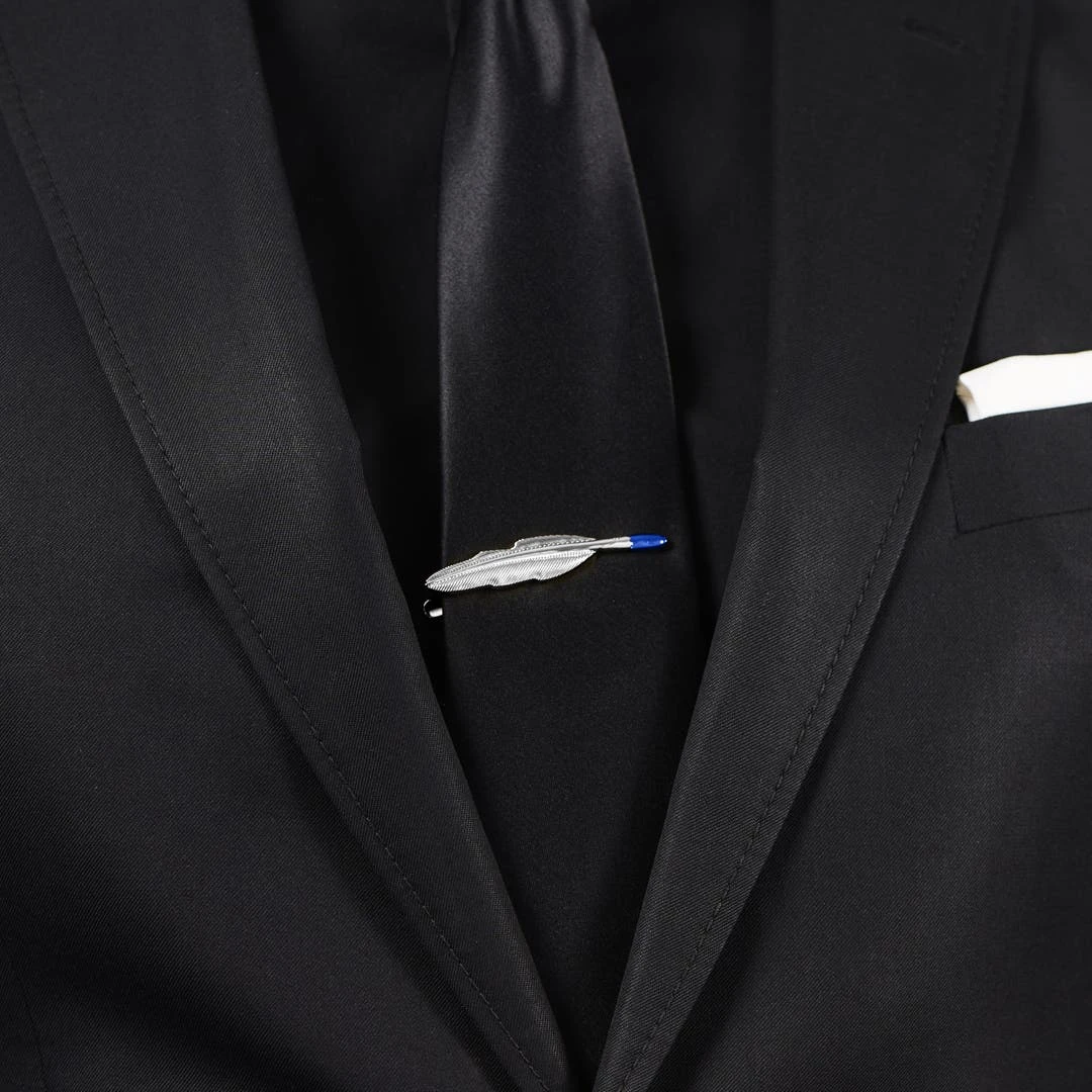 Vous n’avez pas besoin d’être un écrivain pour apprécier l’élégance de cette pince à cravate. Démontrez la même attention aux détails dans votre tenue avec cette magnifique pince en forme de plume d’oie argentée ornée d’une touche de bleu royal sur la pointe.
