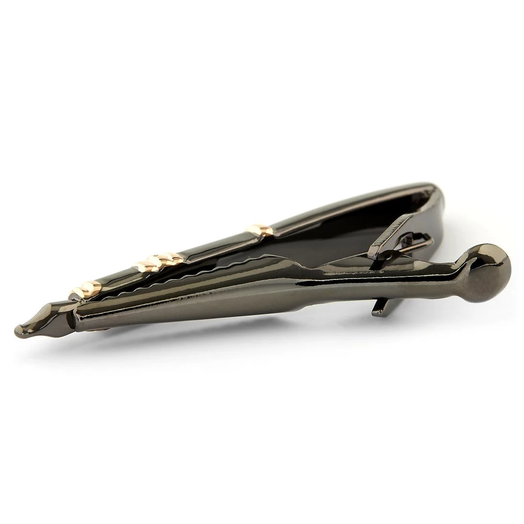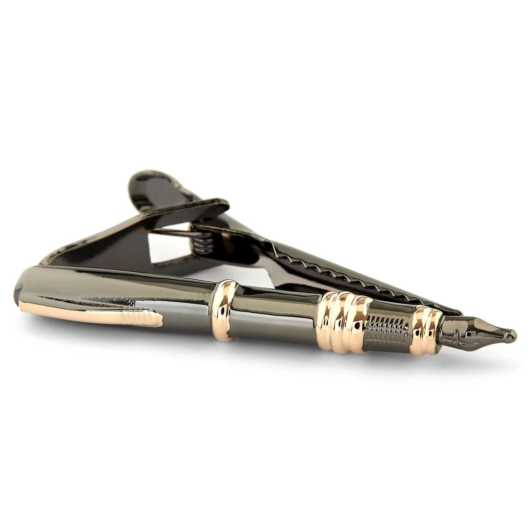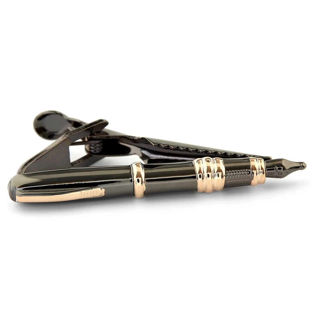 Elle ne peut pas être utilisée pour écrire, mais vous pouvez l’utiliser pour obtenir un look fringant et charmant. Cette belle pince à cravate noire et dorée est un détail élégant pour toute tenue. Elle gardera également votre cravate bien droite afin que vous puissiez profiter de votre dîner.
